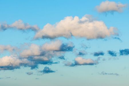 Cumulus white and gray clouds on a blue sky. Beautiful dreamy scene of air clouds on blue sky background.