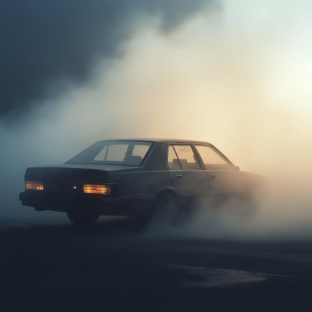 Experience the raw power and exhilarating energy of a high-performance sports car enveloped in thick, billowing smoke. This image captures a moment of intense automotive action, showcasing speed and dynamic movement.