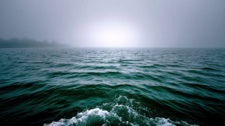This atmospheric image features gentle ocean waves under a foggy sky, creating a serene landscape perfect for evoking calm and introspection in nature lovers.