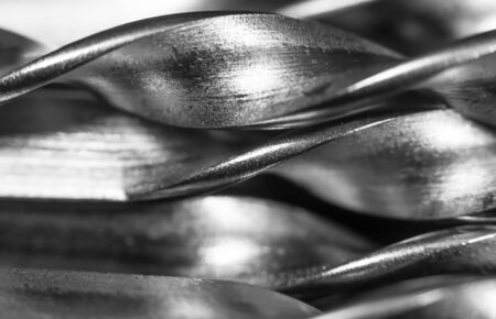 a lot of drills at the macro lie side by side on a black background