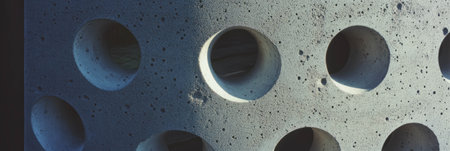 Close up of a cement wall with holes in the shape of a circle