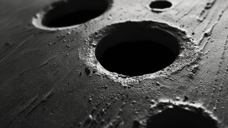 A close-up view of a black and white photo with intriguing holes, adding a unique texture and depth to the image, Ai Generated.