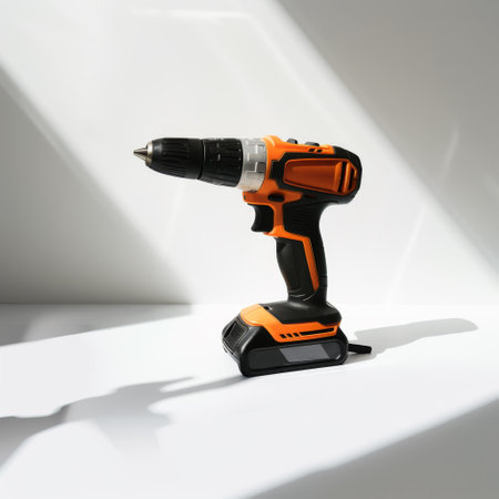 cordless power drill with orange and black design for repair projects isolated on white background