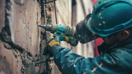 Construction worker using a drill.