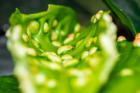 Rose Apple Leaf Blister. Close up disease caused by blister mites of leaf in garden, Cancerous Gall Infected, Selective focus.