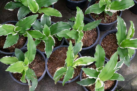 leaf ornamental plant on the nature plant tree, green plants many kinds growing in the garden decorate front garden Variegated plants leaves, fern garden