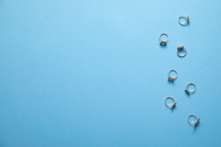 photo of a metallic silver ring with a minimalist design, lying on the lower-left of an empty sky blue background. The ring reflects subtle highlights while leaving the top area open for text, isolated on sky blue background --no people man woman --chaos 12 --ar 16:9 --style raw --stylize 250 --weird 150 --v 6.1 Job ID: a4b0c4b9-6152-43c9-88ac-9778a76287fd
