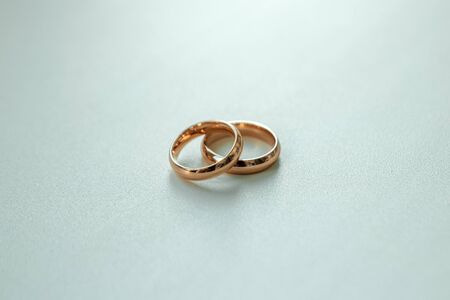Gold wedding rings. The concept of marriage, family relationships, wedding paraphernalia