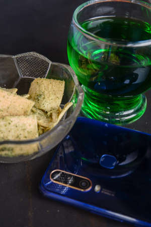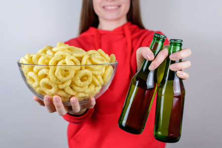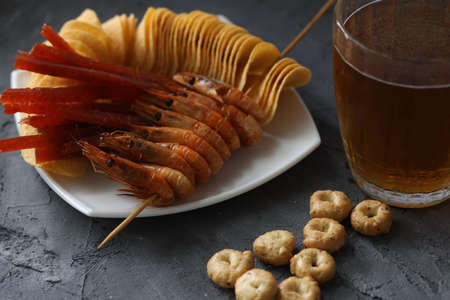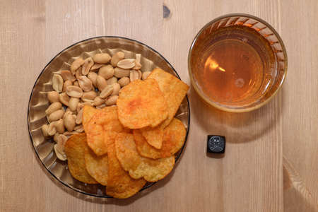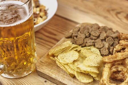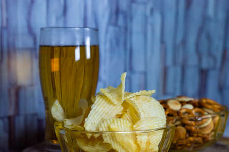 Cold beer snacks and potato chips