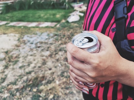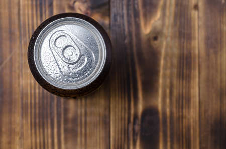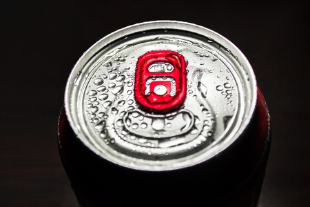 Tin can with drink, top view, close-up. Cool drink when you want to drink.