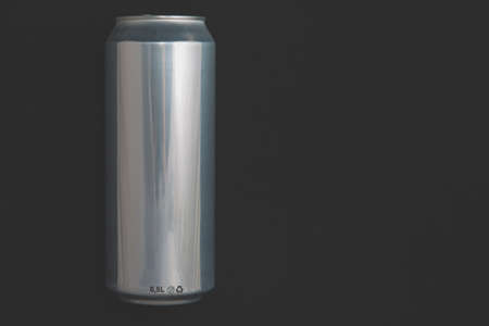 aluminum soda and beer beverage can with water droplets isolated on dark background, metal can, recyclable product