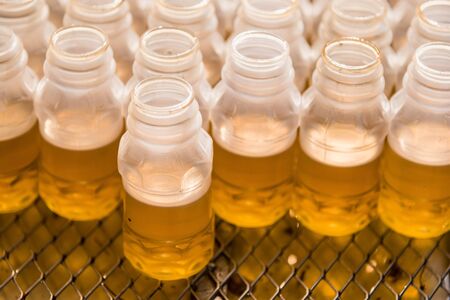 Plastic bottles with vegetable oil To fill the lantern in the Thai temple