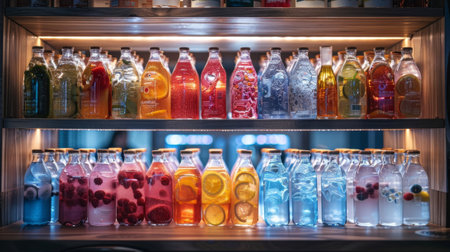 modern presentation of electrolyte drink in a sleek fridge, attractive design for a hydration solution idea