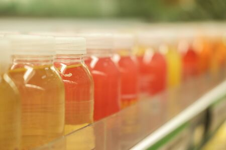 Variety of cold drinks in small bottles