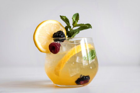 A beautifully presented cocktail featuring vibrant lemon and mint garnishes. Perfect for summer gatherings, bars, and special occasions. Refreshingly delicious!