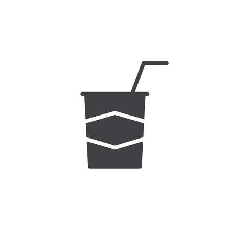 Beverage in glass with straw icon vector, filled flat sign, solid pictogram isolated on white. Glass of juice drink symbol, logo illustration