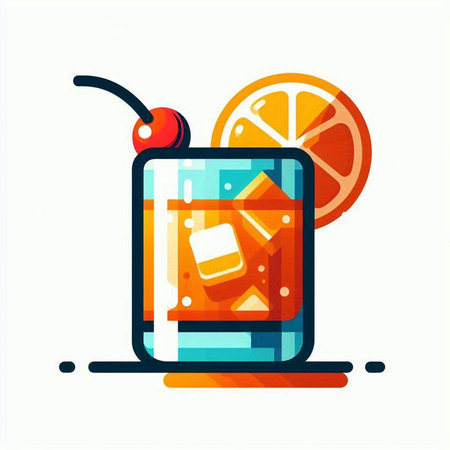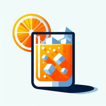 Cocktail with orange and ice in a glass. Vector illustration.