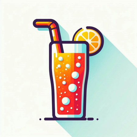 Vector illustration of a glass of orange juice with a straw and a slice of lemon