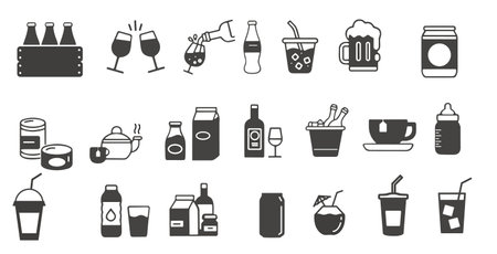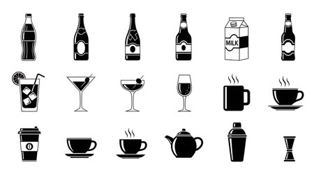 beverage icons set, silhouette style design, vector illustration eps10 graphic