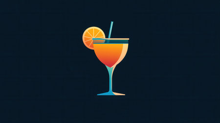 Brightly colored cocktail glass with an orange slice and straw embodies a refreshing drink concept perfect for lively summer events and marketing.