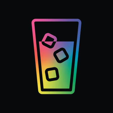 glass of water with ice cubes icon. Rainbow color and dark background