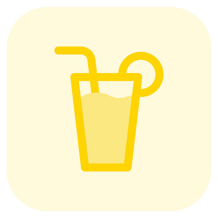 Glass of juice served with straw and lemon slice