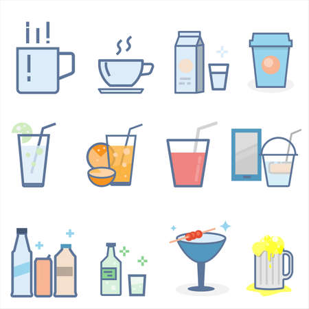 beverage icon set in flat color style, unique design, expanded stroke, and editable vector with any color or size what you like