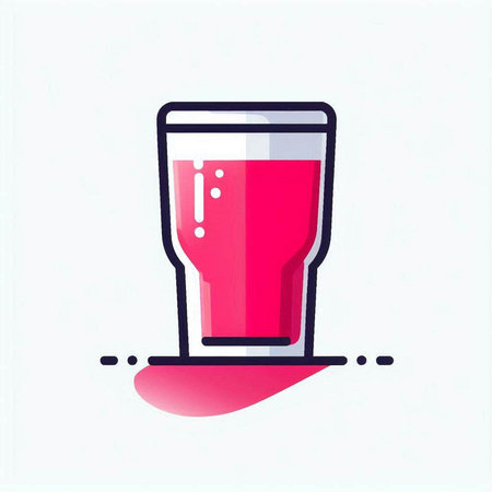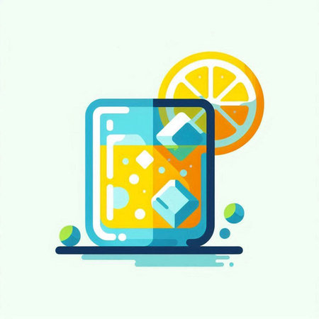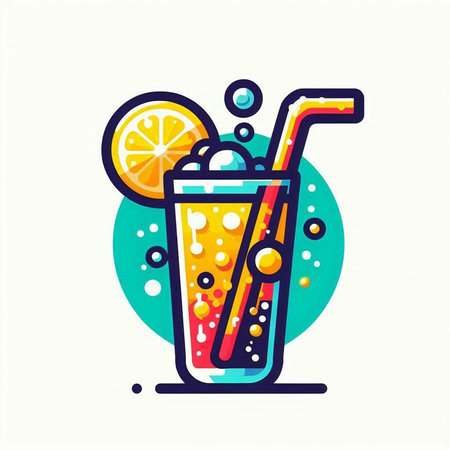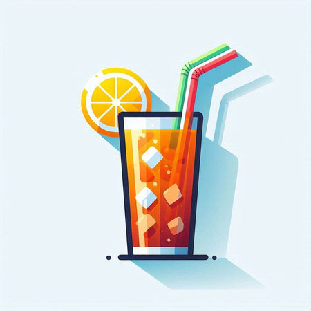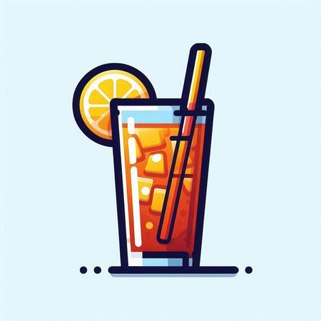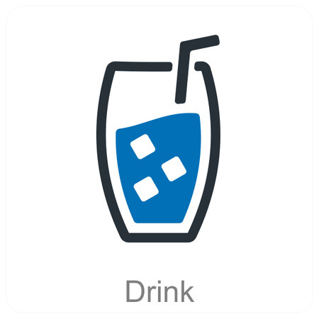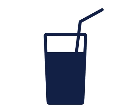 A minimalist illustration of a drink in a glass with a straw. The design features clean lines and a modern aesthetic, using blue and black accents. It's a simple yet stylish representation of