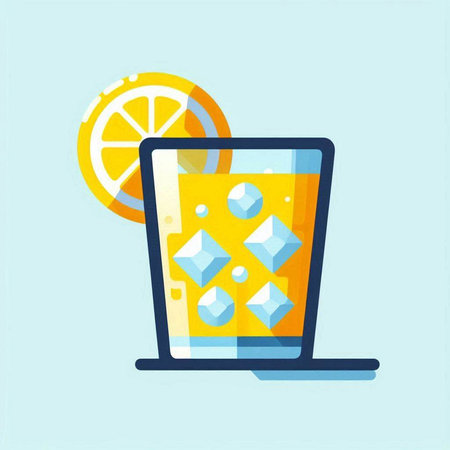 Cocktail with lemon and ice. Vector illustration in flat style