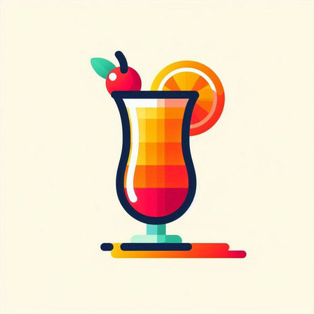 Cocktail with orange slice and cherry. Colorful vector illustration.