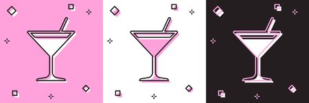 Set Martini glass icon isolated on pink and white, black background. Cocktail icon. Wine glass icon. Vector Illustration