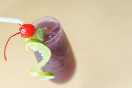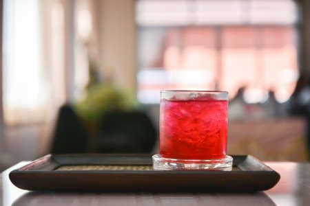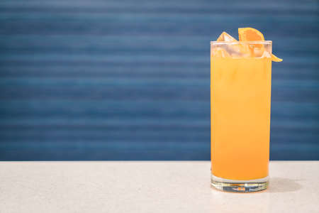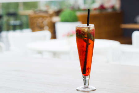 Close up glass of Cocktail on the table. Ready long drink. Bar drinks series