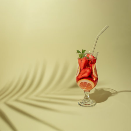 Cocktail glass filled with strawberries and lemon. Summer fruit concept