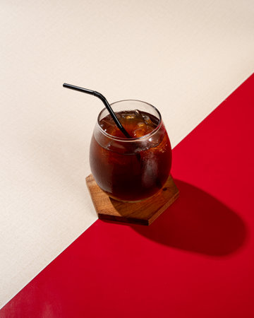 Drinks for a relaxing afternoon at the office. Black coffee mixed with sweet orange juice placed in the iced cup. Creative coffee.