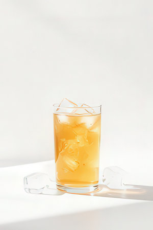 Iced tea with ice cubes in a glass on a white background