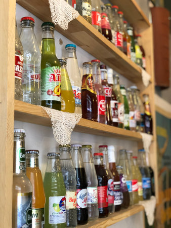 December 24, 2017 San Luis Obispo / CA / USA - Various flavors of soda drinks in a store in downtown San Luis Obispo