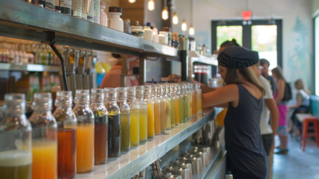 A shelf filled with locally made artisanal sodas offering customers a unique and caffeinefree beverage experience
