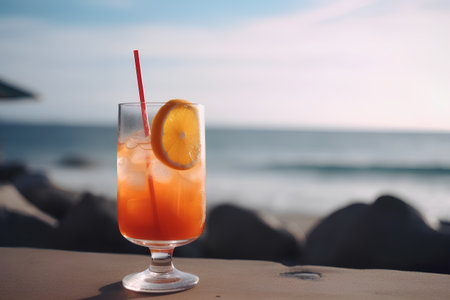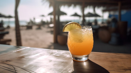 Tropical sunset cuba cocktail. Seaside sunny. Generate AI