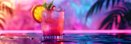 Kamikaze Cocktail on Neon Background, Strong All Day Cocktail, Cold Bar Drink, Copy Space, Abstract Generative AI Illustration