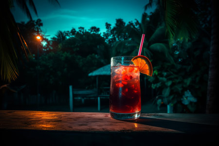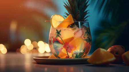 AI Generated. Refreshing Drink with Tropical Vibes at Sunset