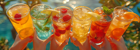 Enjoy a vibrant selection of colorful summer drinks featuring refreshing flavors and bright garnishes. Perfect for warm days by the pool or at gatherings.