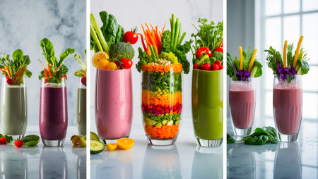 collage of different fresh vegetable smoothies