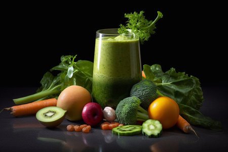 healthy vegetable juices for refreshment and as an antioxidant . Black background
