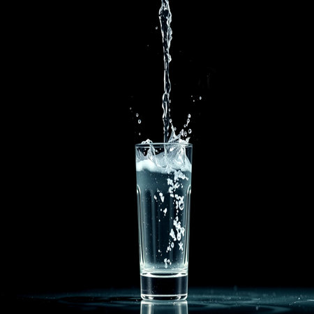 pouring water into a glass on a dark background