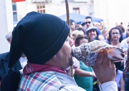POLIZZI GENEROSA, SICILY-AUGUST 21: Portuguese folk group at the International Festival of hazelnuts, parade through the streets of the country :August 21, 2011 in Polizzi Generosa,Palermo, Sicily, Italy