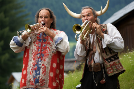 Harmony of Alpine Horns: Mesmerizing Male Duet at 9th International Festival in Nendaz, Switzerland