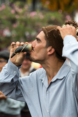 FUNCHAL, PORTUGAL - SEPTEMBER 4, 2016: man in traditional costume durnig historical and ethnographic parade of Madeira Wine Festival in Funchal. Madeira, Portugal