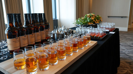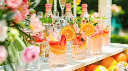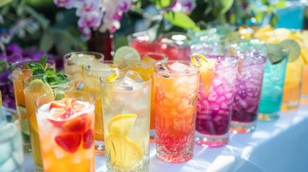 Colorful beverages on a table with a stylish and sophisticated atmosphere
