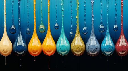 Colorful drops of water on a colorful background. Drops of water