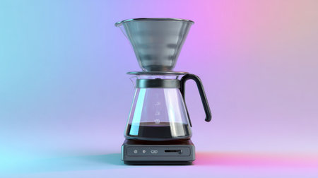 A sleek coffee dripper set against a colorful gradient background, perfect for enthusiasts seeking a modern and stylish brewing experience at home.